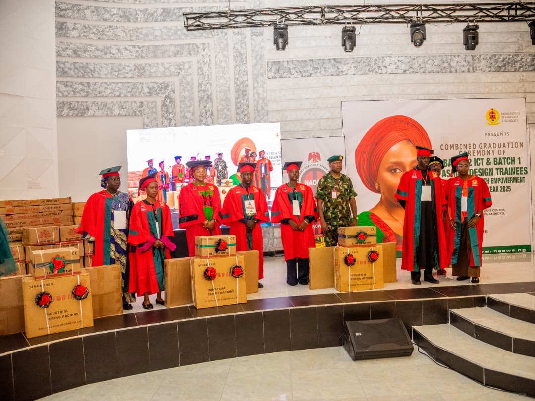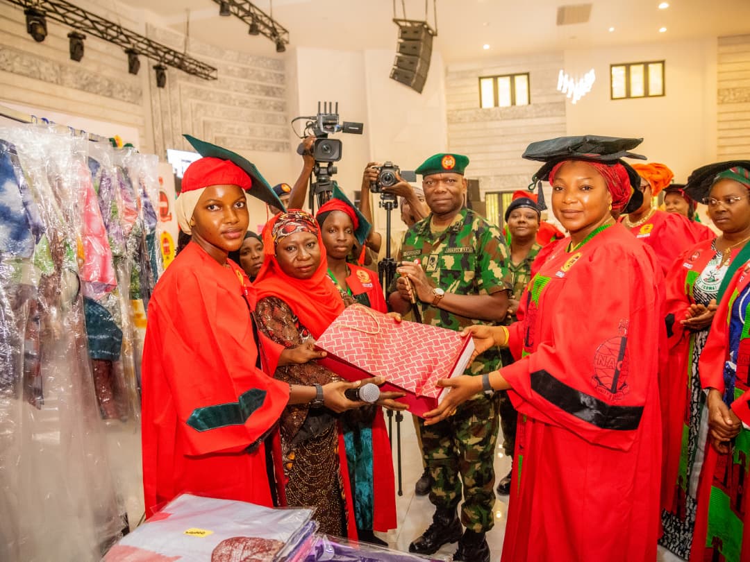The colourful ceremony, held on 9 August 2025 at the Mrs. Alero Azazi Event Centre, Mambilla Barracks, Abuja, also saw outstanding graduates honoured with starter packs — including laptop computers and sewing kits — to support their immediate transition into entrepreneurship and employment.